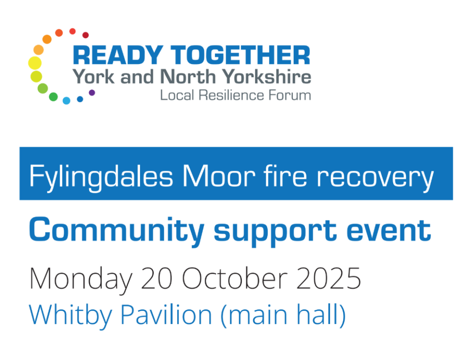 Hosted by the York and North Yorkshire Local Resilience Forum Date: Monday 20th October 2025 Time: Drop in anytime between 2pm – 7pm Location: Whitby Pavilion (Main Hall), West Cliff, Whitby YO21 3EN Cost: FREE If you’ve been affected by the Fylingdales Moor fire, this event is here to help. Come along to find out[…]