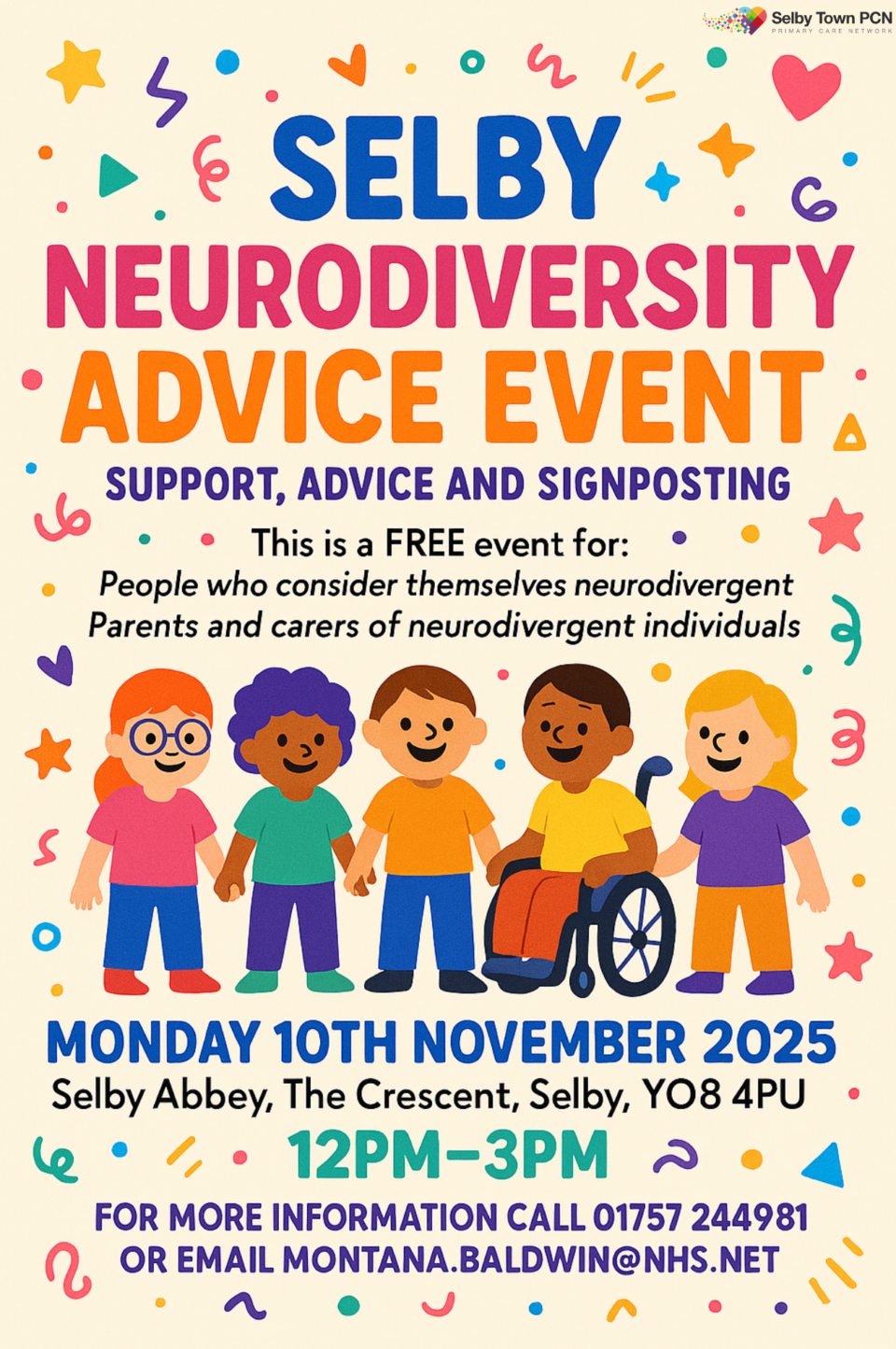 Are you neurodivergent or supporting someone who is? Join us for the Selby Neurodiversity Advice Event, a free and welcoming opportunity to access practical support, advice, and signposting tailored to your needs. Date: Monday 10th November Time: 12pm – 3pm Location: Selby Abbey, The Crescent, Selby, YO8 4PU Cost: FREE This event is open to:[…]