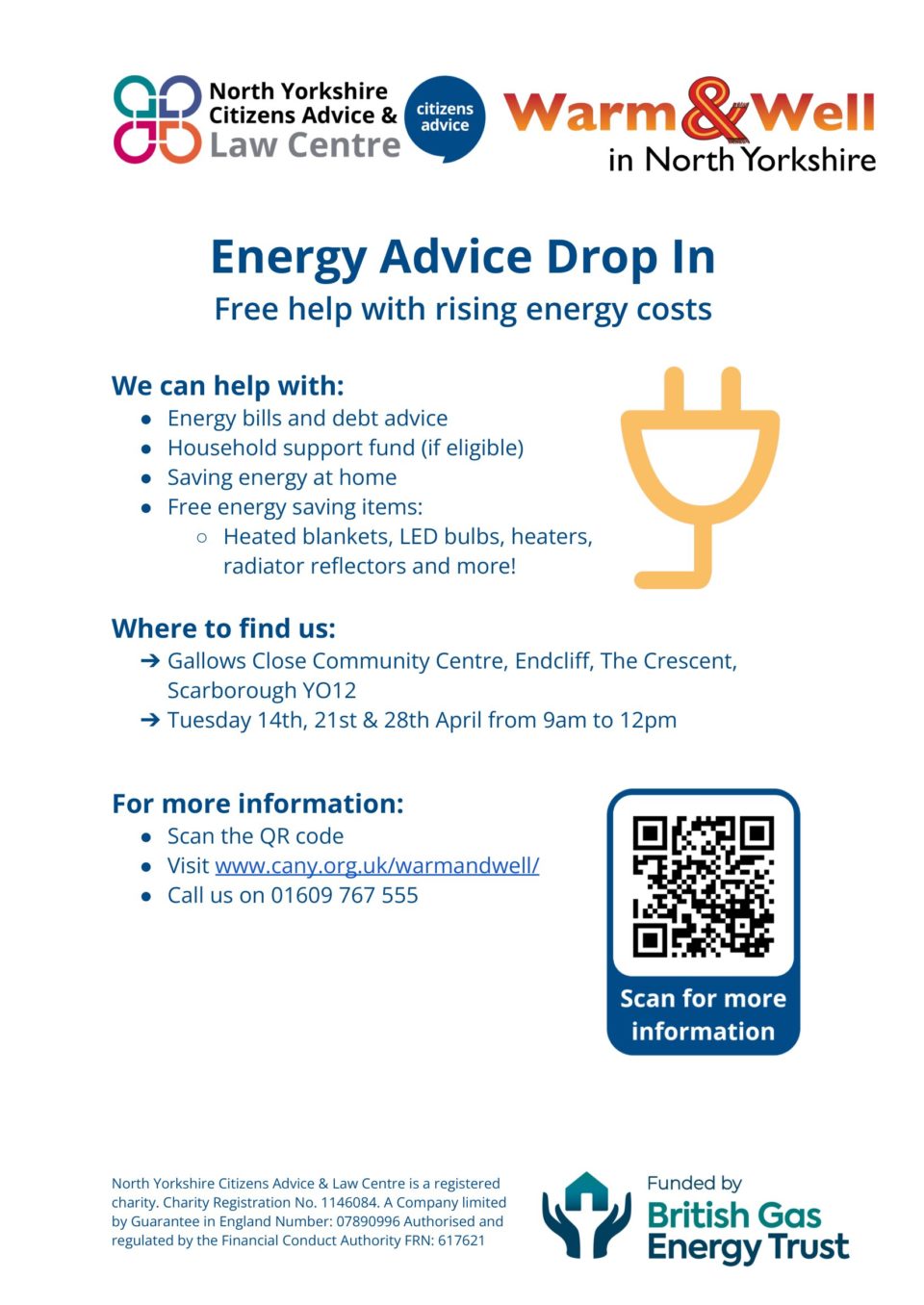 People in Scarborough can access free support with rising energy costs at upcoming Energy Advice Drop-In sessions this April. Friendly advisors will be available to offer help with: Energy bills and debt advice Household Support Fund applications (if eligible) Practical ways to save energy at home Visitors can also pick up free energy-saving items, including[…]