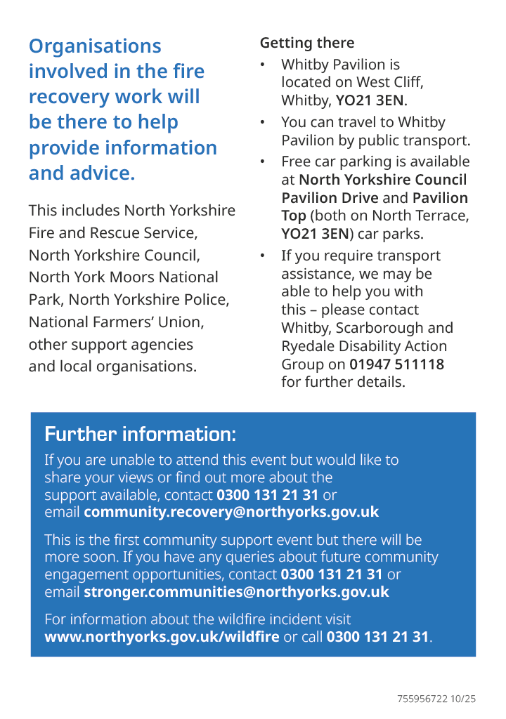 If you’ve been affected by the Fylingdales Moor fire, this event is here to help.