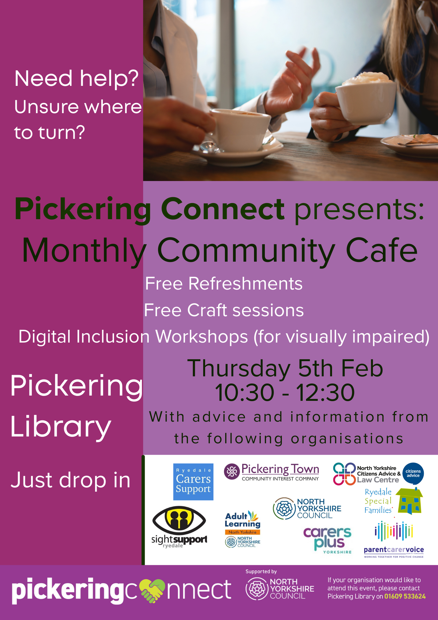 Looking for friendly support, useful information, or just a welcoming place to drop in? Join us at the Monthly Community Café in Pickering.